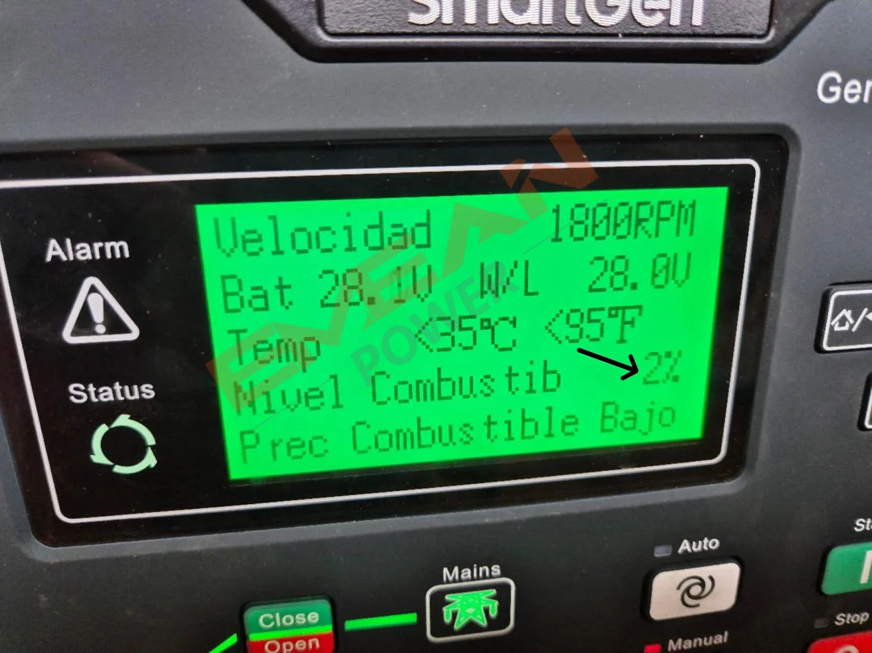 Khi bình nhiên liệu của máy phát điện diesel của bạn đầy nhưng màn hình điều khiển lại hiển thị mức dầu quá thấp (chẳng hạn như chỉ hiển thị 2%), thì điều này thường cho thấy cảm biến hoặc cài đặt có vấn đề.